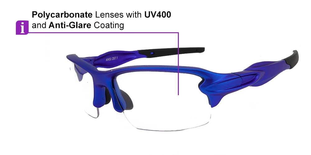 Engineered to protect and to impress, these safety eye wears feature a metallic Blue exoskeleton which is scratch and impact resistant.