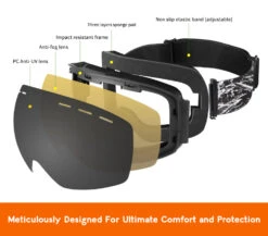 These attractive ski goggles will uplift your experience with their unique looks and comfort. The curvy and bendable material ensures your fit is always snug, whilst the dual layer anti-fog, anti-uv and impact resistance lenses provides all the solar protection you need.